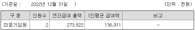 미등기임원의 평균연봉은 1억 3600만원이고 직원수는 2명입니다.