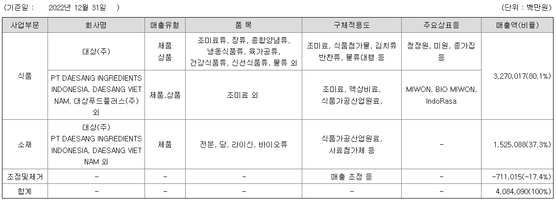 (가) 사업부문별