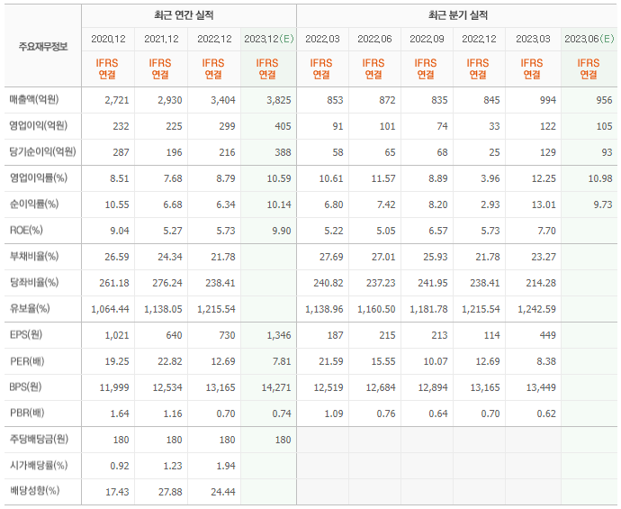 2022년 매출은 3404억, 영업이익은 299억, 당기순이익은 216억입니다. 그리고 영업이익률은 8.79%입니다.