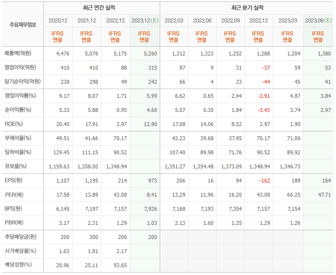 2022년 매출은 5175억, 영업이익은 88억, 당기순이익은 49억입니다. 그리고 영업이익률은 1.71%입니다.