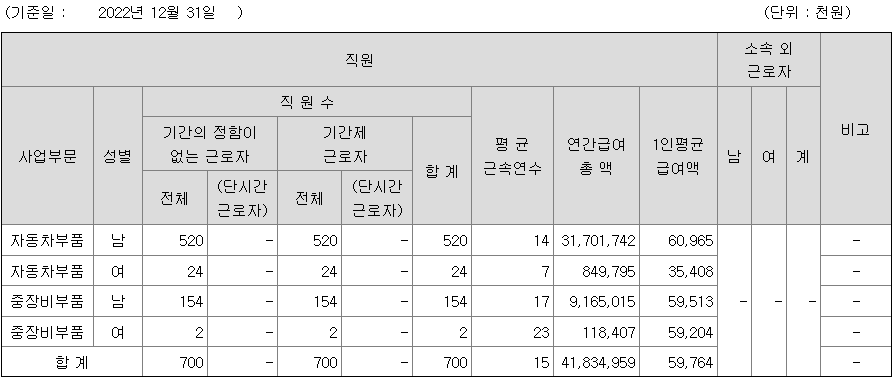 | 자동차부품 | 남 | 520 | 14 | 60 |