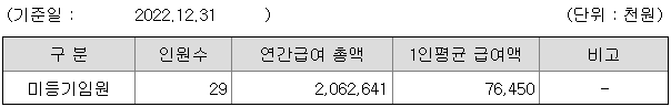 미등기임원의 평균연봉은 7600만원이고 직원수는 29명입니다.
