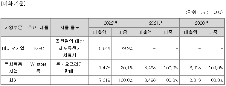 보고서 기준일 현재 무릎 골관절염(Knee OA) 적응증에 대한 FDA 임상 3상 시험을 진행중에 있으며, 고관절 골관절염(Hip OA) 적응증은 FDA로부터 임상 2상 승인을 받았고, 퇴행성 척추 디스크질환(IVD degeneration) 적응증에 대한 전임상 연구개발을 진행 중에 있습니다.