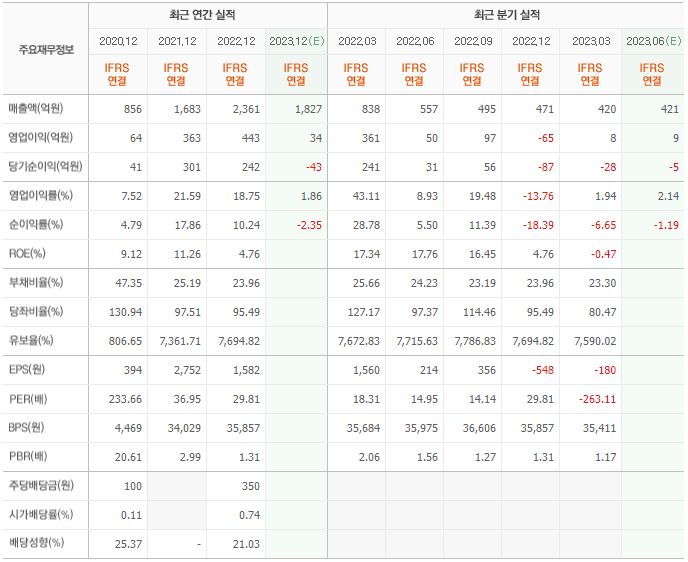 2022년 매출은 2361억, 영업이익은 443억, 당기순이익은 242억입니다. 그리고 영업이익률은 18.75%입니다.