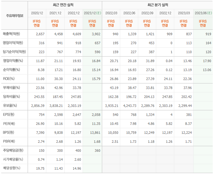 2022년 매출은 4609억, 영업이익은 918억, 당기순이익은 774억입니다. 그리고 영업이익률은 19.93%입니다.