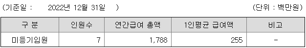 미등기임원의 평균연봉은 2억 5500만원이고 직원수는 7명입니다.
