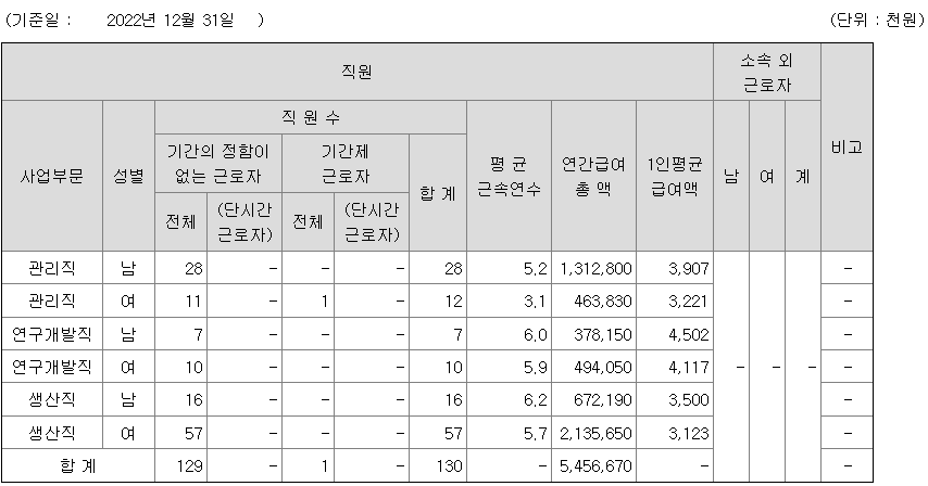 | 사업부문 | 성별 | 직원수 | 평균근속연수 | 평균연봉(백만) |