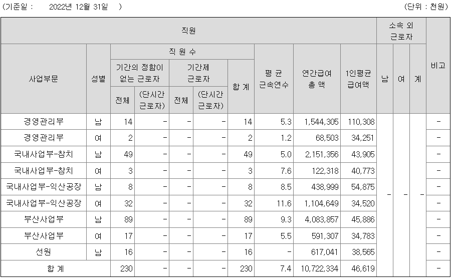 | 국내사업부-익산공장 | 여 | 32 | 11.6 | 34 |