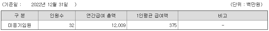 미등기임원의 평균연봉은 3억 7500만원이고 직원수는 32명입니다.