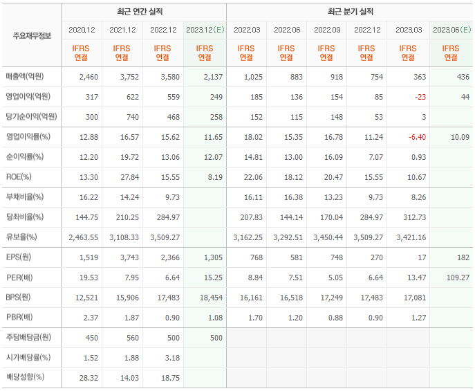 2022년 매출은 3580억, 영업이익은 559억, 당기순이익은 468억입니다. 그리고 영업이익률은 15.62%입니다.
