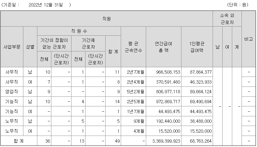 미등기임원의 평균연봉은 1억 1800만원이고 직원수는 7명입니다.