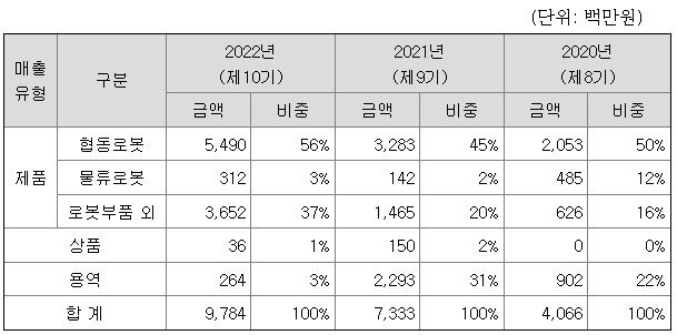 당사는 중소 제조기업에 요구되는 다품종 변량생산 체제의 제조 공정을 자동화하는데 있어 핵심제품인 협동로봇(collaborative robot 또는 cobot)을 개발하고, 협동로봇기술의 한 분야만 연구개발해온 국내 대표 협동로봇 자동화 원천기술 기업입니다. 협동로봇 플랫폼을 개발하여 중소 제조기업 등에 공급한다는 점에서 본다면, 당사는 제조기반 B2B 딥테크 기업이라고 할 수 있습니다.