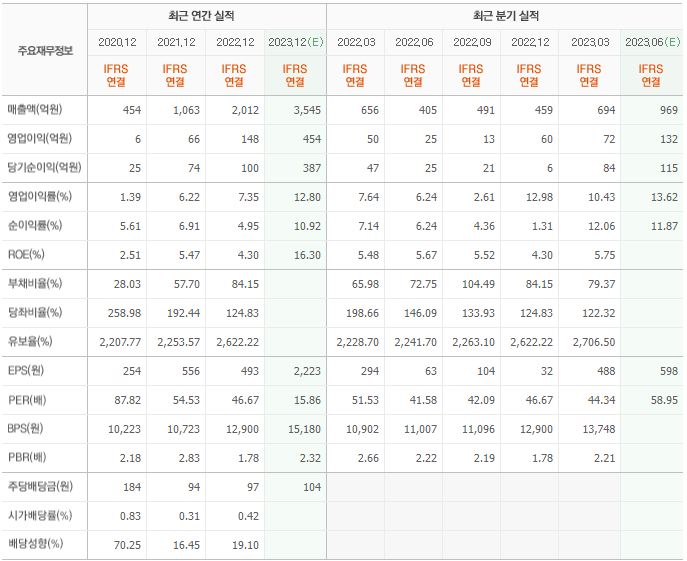2022년 매출은 2012억, 영업이익은 148억, 당기순이익은 100억입니다. 그리고 영업이익률은 7.35%입니다.